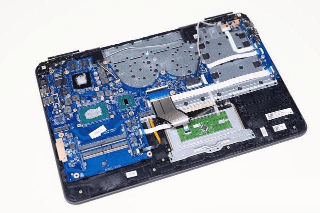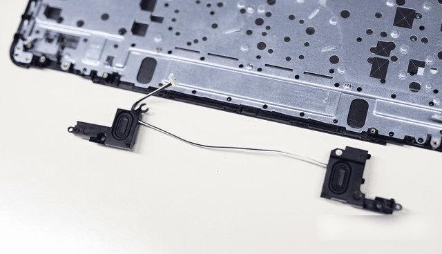 在取下屏幕转轴之后我们可以取下暗影精灵II的音响模块了,不过令人失望的是Bang &Olufsen认证的扬声器体积的确太小,这点跟同级别的游戏本还是有些差距的。