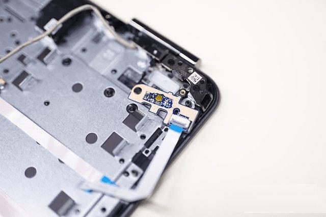 在取下散热模组后,我们就可以来拆卸主板了,不过在拿掉所有连接排线之后发现这边还有一块左侧接口的逻辑板。