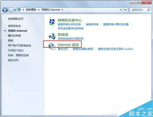 1.依次点击“开始”→“控制面板”→“网络和 Internet”,点击“Internet 选项”。