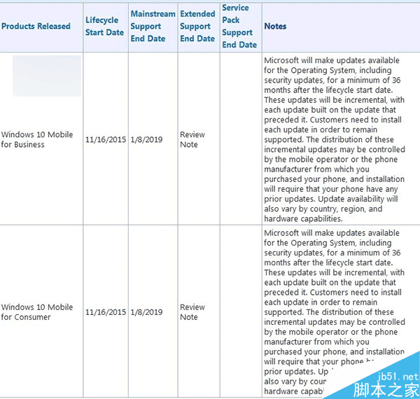 近期最先搭载Win10 Mobile系统的Lumia950、Lumia950 XL已经陆续开始上市开卖,而Win10 Mobile正式版即将面向WP8.1手机设备进行推送。根据微软官方文档透露,Win10 Mobile生命周期已经开始计算,从2015年11月16日开始,截止到2019年1月8日。