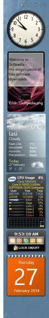 它自带了大量的实用小部件,包括Windows 7时代系统集成的和很多第三方的,而且可以灵活配置,包括调整侧边栏位置、自定义或者自动宽度、创建任务栏图标等等。