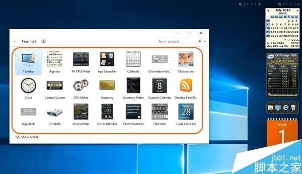 推荐“8GadgetPack”,支持32/64位的Windows 10,安装后会在桌面上创建一个侧边栏,右键点击位置即可添加小部件。