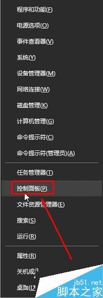1、按下“Win+X”组合键,点击“控制面板”即可。