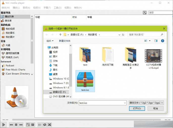 如果有的ISO无法直接播放,可先用Windows 8.1或Windows 10资源管理器打开该ISO,然后用音视频播放器播放新出现的虚拟光盘。VLC播放器的另一个特色,是可以播放残缺的视频文件。