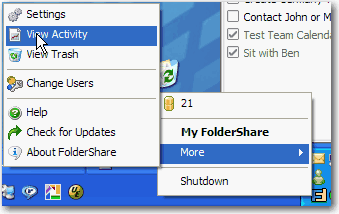 - 到www.foldershare.com 注册新帐户,并下载客户端在本机和所有要共享文件的计算机上安装