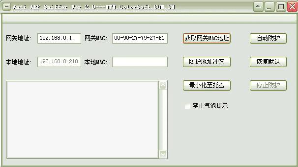 然后关闭color.exe 运行Antiarp.exe出现下图 在网关地址输入你自己的网关后选择获取网关MAC地址