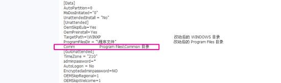 TargetPath=/WINXP 改动后的 WINDOWS 目录
