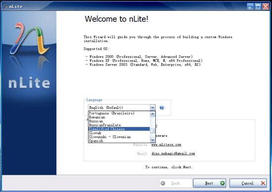 系统安装文件精简软件 nLite,(安装前确认是否已安装Microsoft.NET Framework 2.0)