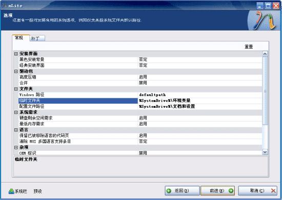 打开 nLite 首先选择语言,然后选择系统安装文件所在的目录-- C:/install 前进,在任务选择中选"选项",前进,把配置文件路径的 Documents and Settings 改为其它名称,然后完成就可以了,下一步很重要,就是把 C:/install/i386/txtsetup.sif 剪切到 C:/BOOT 下,并记得去掉只读属性。
