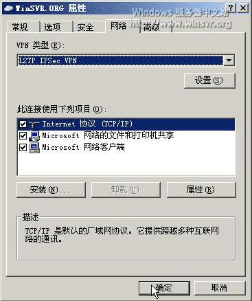 然后点击网络标签,在VPN类型栏,选择为L2TP IPSec VPN,然后点击确定。