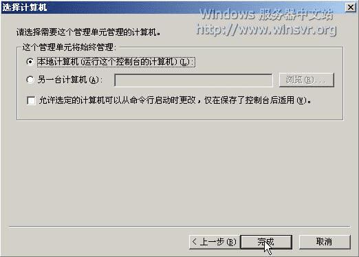 在选择计算机对话框,接受默认的本地计算机,点击完成;