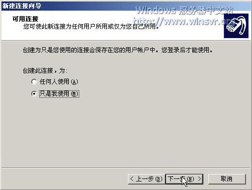 在可用连接页,根据自己需要进行选择,在此我接受默认选择只是我使用,点击下一步;