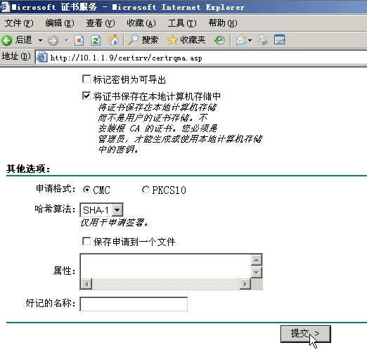 然后在下部勾选将证书保存在本地计算机存储中,点击提交;