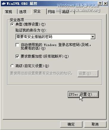 然后在VPN客户端Perth上,右击创建的VPN连接,选择属性,然后在安全标签上点击IPSec设置,