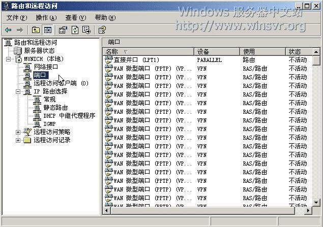 你可以对允许的端口数进行设置,在路由和远程访问管理控制台中右击端口,选择属性,然后在弹出的端口属性对话框中,选择端口后点击配置,