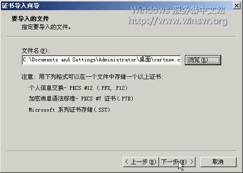 然后在要导入的文件页,选择刚才下载的CA证书,点击下一步;