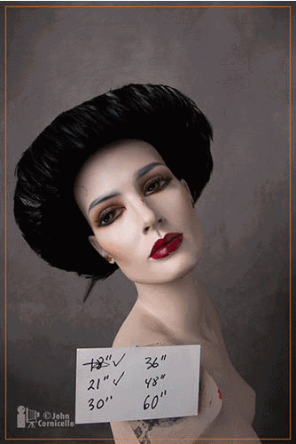 再来看看另一个示例,摄影师拍摄一个塑料模特,相机焦距固定在24mm,然后只是改变相机和模特之间的距离,从45厘米到152厘米拍了6张距离不同的照片,并将照片进行切割让所有照片的头像大小接近一致。然后就有了下面这张图: