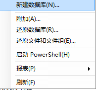 包括如下子菜单:新建数据库,附加,还原数据库,还原文件和文件组,启动PowerShell,报表,刷新;