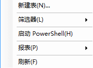 包括五项:新建表;筛选器;启动PowerShell;报表;刷新;