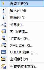 包括:设置主键;插入列;删除列;关系;索引/键;全文索引;XML索引;CHECK约束;空间索引;生成更改脚本;