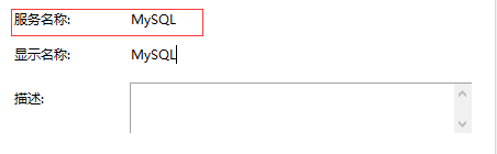 注意MySQL这个名称要是服务列表中的对应得服务名称才行,右击选中的服务,选择属性就可以看见