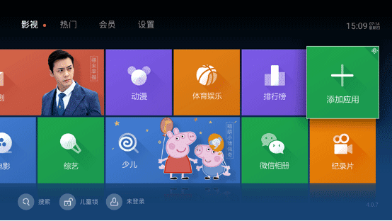 安装泰捷视频之后打开,在首页我们可以看到一个带有“+”添加应用的按钮(如下图),点击进去能看到很多应用,点击安装,这个应用就会出现在泰捷视频的首页,以后每次登录,便可以很方便地收看直播啦: