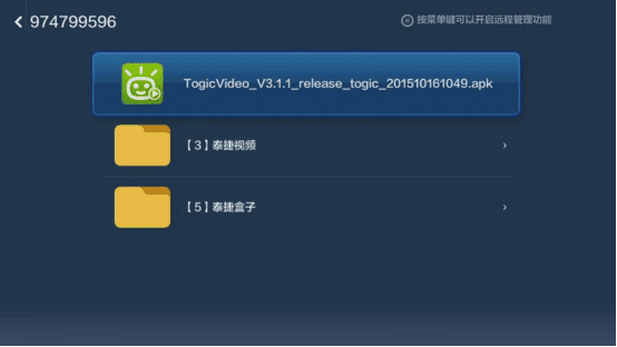 1、以一款优秀的视频软件“泰捷视频·直播点播聚合应用”为例,首先到泰捷官网,下载泰捷视频最新的安装文件,转移至U盘。然后将U盘插到小米盒子的USB接口,盒子将自动检测安装文件,弹出相关提示: