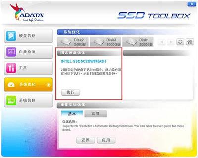 4.ADATA SSD TOOL 这个工具方便在识别第三方的SSD,算是很大的一个优势。而且可以在XP操作系统下使用。虽然XP系统本身是不支持TRIM的。
