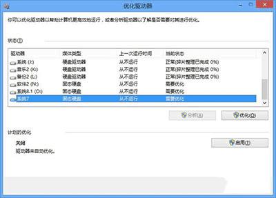 在Win 8以上的操作系统环境中,“”磁盘碎片整理”功能已经整合手动TRIM,选中SSD的所属盘符,点击“优化”然后等几分钟即可。当然一般能使用工具的情况下也不建议使用这种方法。