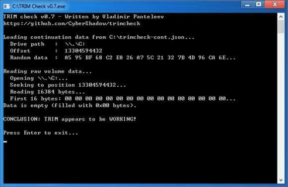 查看TRIM指令是否生效
