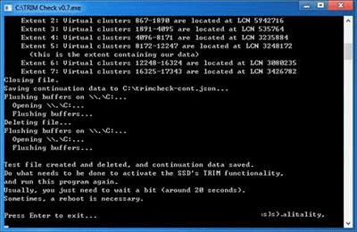 然后软件会自己创建一个文件然后删除,为了是TRIM指令生效,需要等待20秒左右,之后就可以关闭了。