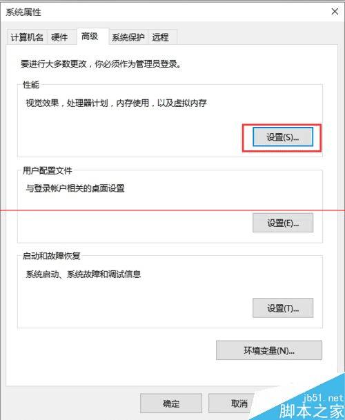 4、在系统属性里选择高级,点击设置: