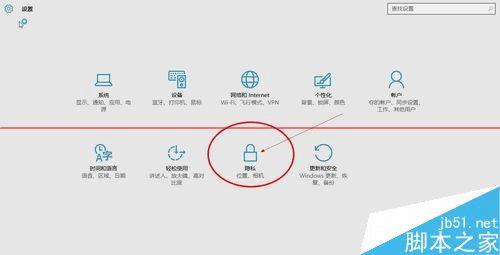 2、打开设置界面之后我们会发现许多选项,今天我们需要使用的是隐私,因为相机或者摄像头就在隐私选项里。