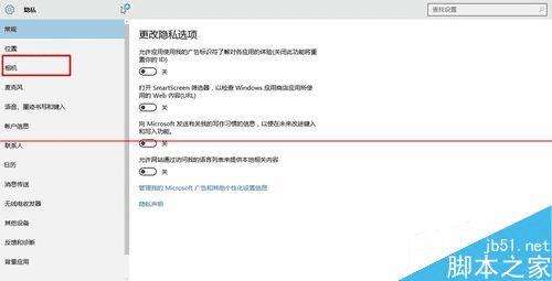 5、相机是一个比较隐私的设置,我们可以看下微软关于隐私的条例。所以打开与否自己斟酌。