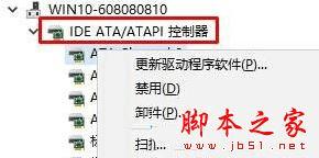 6、展开“IDE ATA/ATAPI的控制器”,在下面的驱动上单击右键,选择“属性”;