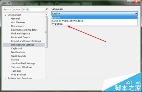 在vs2015中把英文界面变成中文界面的步骤
