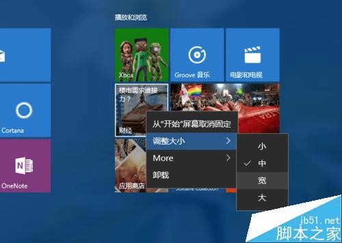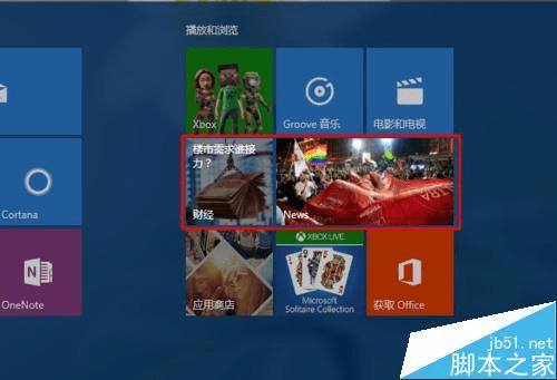 6、“财经”应用磁贴的宽度和“News”磁贴的宽度一致了,两个正好占满了多出来的空间。