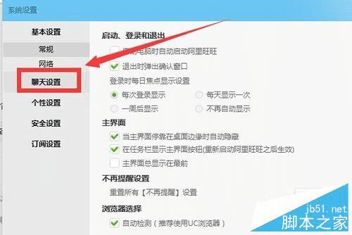 4、在出来的系统设置页面中,选择聊天设置选项。