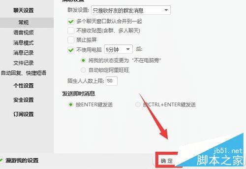 5、在聊天设置的右侧选择多个聊天窗口默认合并在一起,前面的小方框打对号。