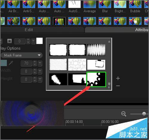 9、这时候,在软件的界面中就可以看到我们新添加的遮罩。当我们在它的遮罩上面点击一下,就可以看到在预览窗口中的图片已经应用了新添加的遮罩效果。希望这会您有所帮助!