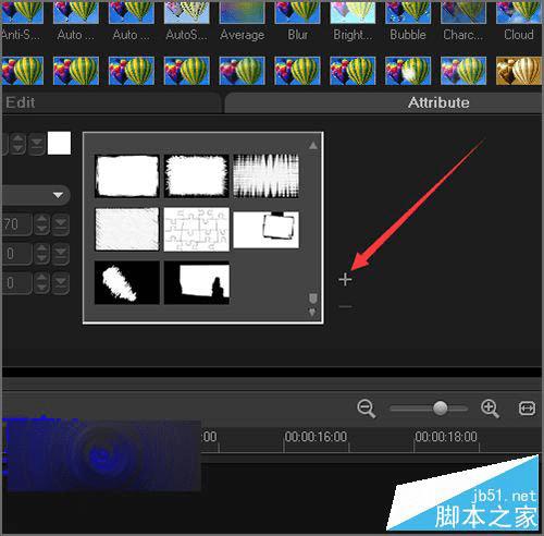3、接着点击打开遮罩和色度键。这里就先讲一下如何通过界面中的加号来找到它的遮罩文件位置。点击遮罩右边的加号。