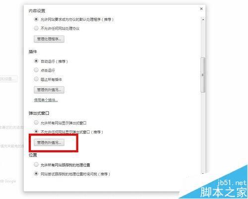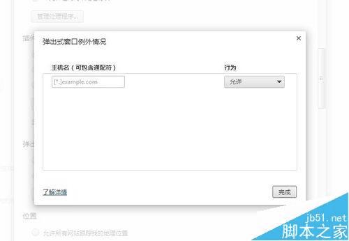 6、如果你只想要允许特定网站弹出窗口,请在“弹出式窗口”部分,选择“管理例外情况”。输入你不希望 Chrome 自动拦截的网站列表。