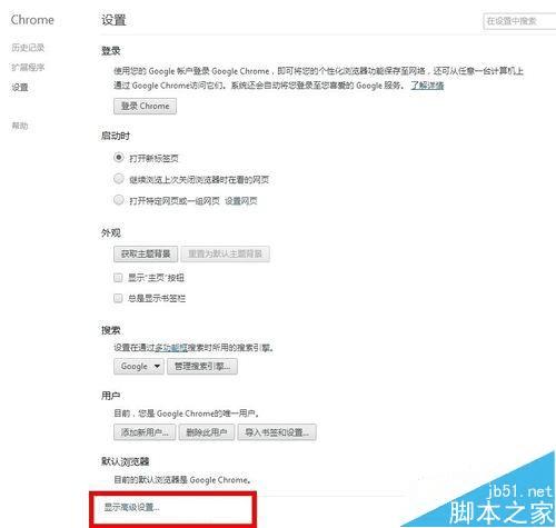 3、在页面底端找到并点击“显示高级设置”。