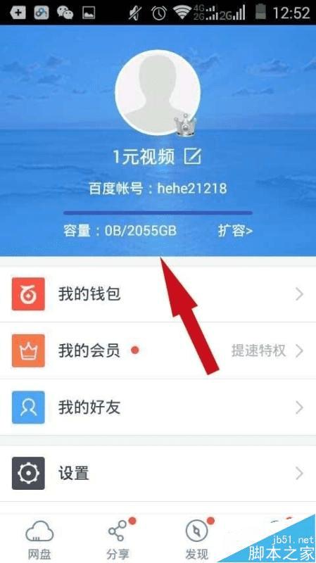6、安装成功后,打开刚刚安装的”百度云“软件,显示后直接登录之前第一步注册的账号,登录进去后你在点击右下角的“关于我”,接着你就会看到你的网盘空间扩展到2055G!在次,再也不用担心不够网盘用了!