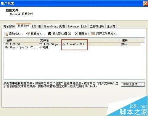 3、确定此次需修复的邮件文件路径。点击开始----设置----控制面板----找到邮件---双击打开---选中数据文件打开---可以看到邮件保存路径。如下图: