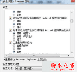 2、Internet选项--安全---自定义级别---安全设置;
