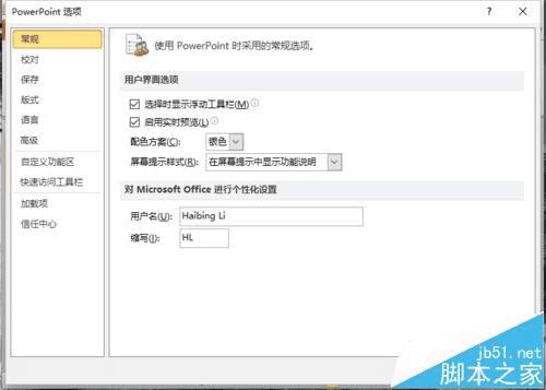 4、点击“选项”命令选项后,这个时候会打开“PowerPoint选项”对话框。如图所示;