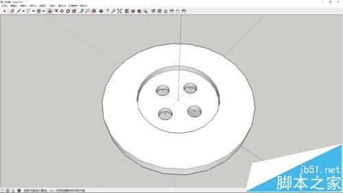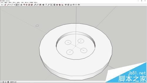 6、绘制四个圆,用推拉工具推出通孔。删除参考线,完成。