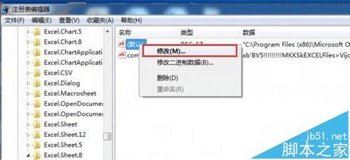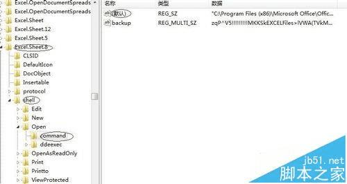 3、点击Excel.Sheet.8,依次选择shell--open--command--(默认)