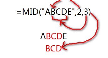5、知识点说明:MID()函数返回从字符串中制定字符开始若干个字符的字符串。如下图,MID()函数返回“ABCDE”字符串中从第2个字符开始的连续3个字符,也就是返回“BCD”。